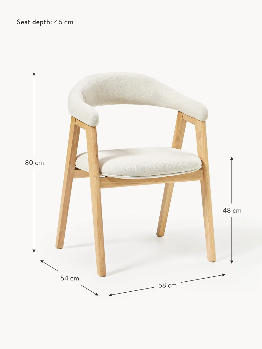 De armstoel Arvo belichaamt tijdloze elegantie in een eigentijds design. Dankzij het zwevende zitvlak en de slanke houten structuur ontstaat een perfecte balans tussen comfort en esthetiek. De zachte rugleuning en afgeronde vormen zorgen voor optimaal zitgemak, terwijl de open constructie een luchtige, moderne uitstraling biedt. Of je hem nu gebruikt aan de eettafel, in de woonkamer of op kantoor – Arvo is de ideale mix van stijl, functionaliteit en comfort.
