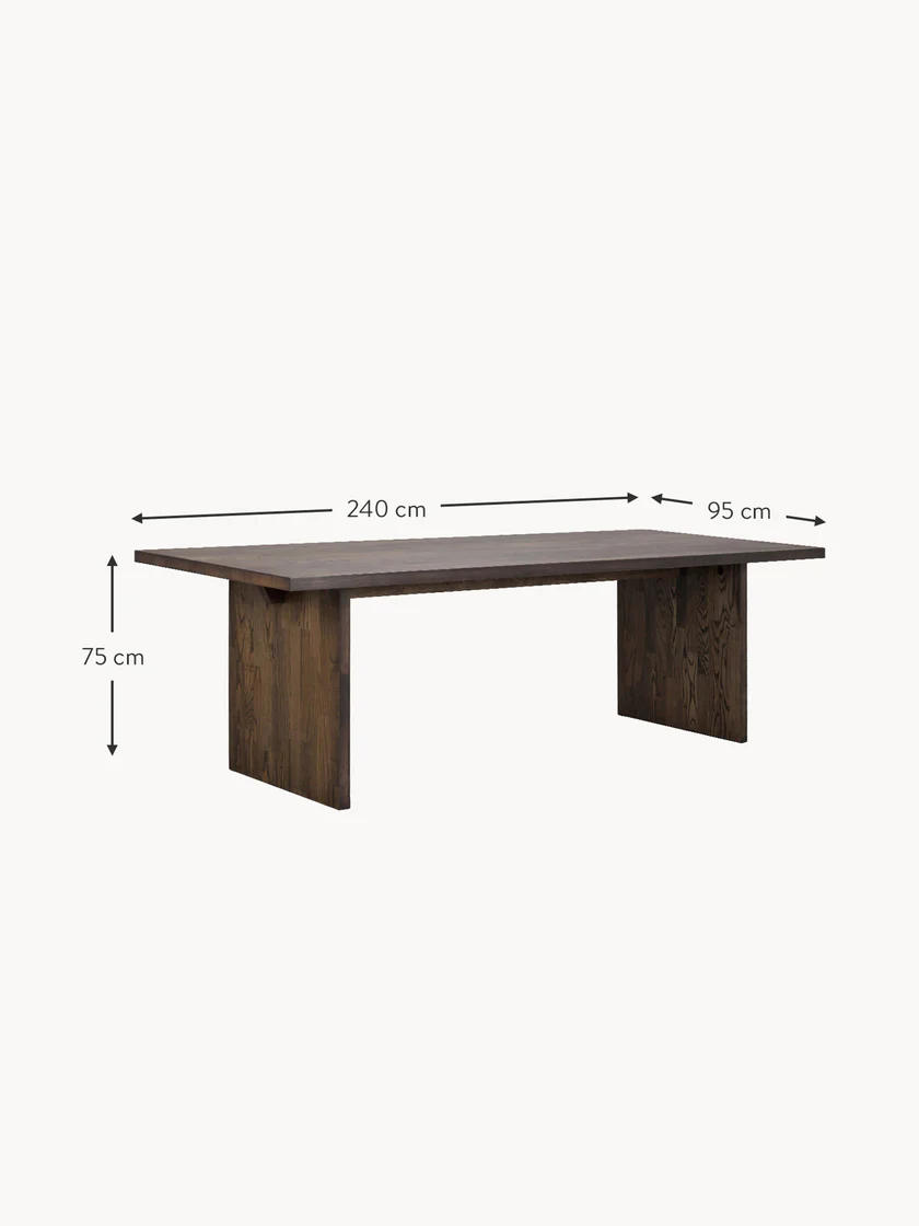 De Eettafel Elano straalt pure klasse en robuuste elegantie uit. Met zijn diepe donkerhouten afwerking en strakke vormgeving is deze tafel ontworpen voor mensen die houden van een tijdloos interieur met een moderne twist. Het royale formaat van 240 cm maakt het de perfecte ontmoetingsplek voor gezellige diners of lange avonden met familie en vrienden.
