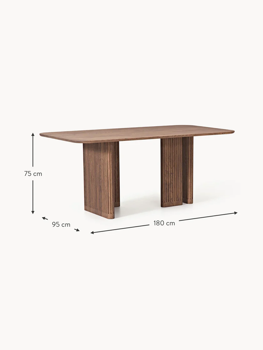 Deze stijlvolle eettafel is ontworpen voor wie houdt van een warme, moderne uitstraling met een verfijnde afwerking. Het blad is gemaakt van gelakt eikenhout in een rijke donkerbruine tint, gecombineerd met een gepoedercoat metalen onderstel dat zorgt voor een elegant contrast en uitstekende stabiliteit.