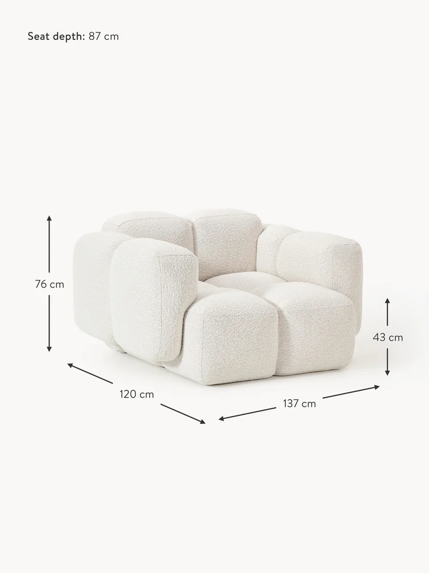 Bekleding: bouclé (80% polyester, 20% polyacryl)